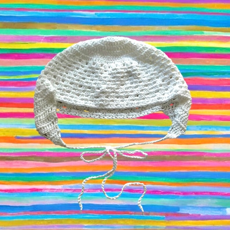 軽やかなコットン糸で編んだ、レースボンネットです。